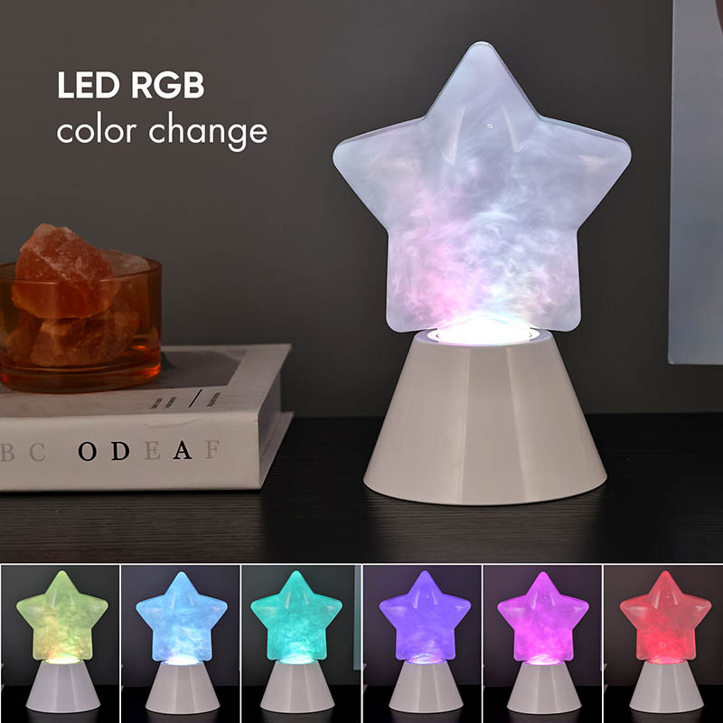 Felhős csillagú folyékony éjszakai fény műanyag bázissal Leírás: Felhőszerű RGB színű csillag alakú, dekoratív éjszakai fény átlátszatlan műanyag bázissal