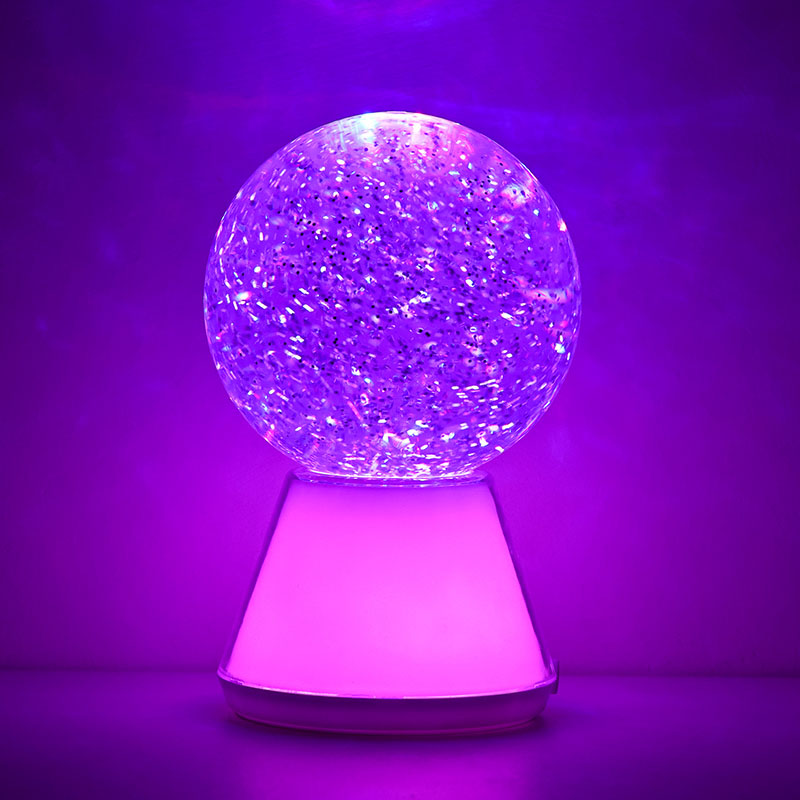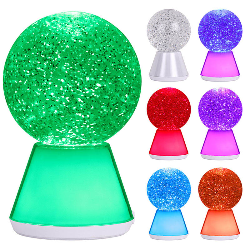 Színváltó folyékony csillogó éjszakai lámpa. egy titokzatos folyadékkal megtöltött gyönyörű üveggömböt tartalmaz, amelyben csillogó flitterek lebegnek. Csodával határos módon a csillám színe megváltozik az éjszakai fény színének változásával, mintha egy varázslatos világban táncolna.