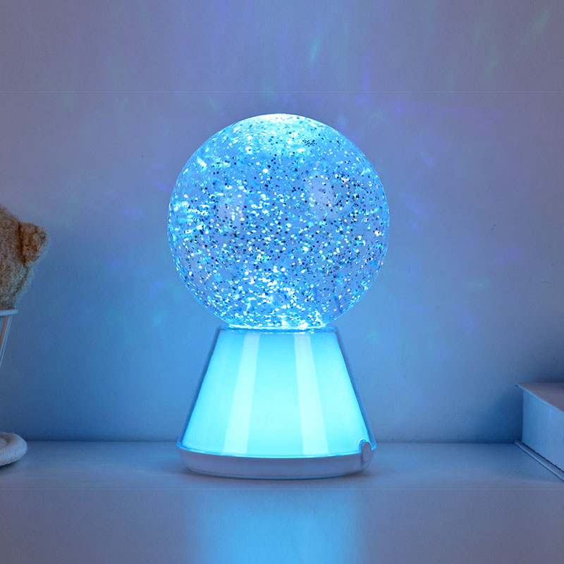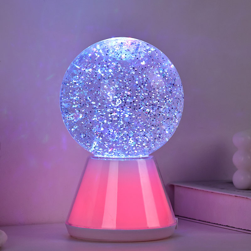 A félhomályos éjszakán a kristálygömb éjszakai fénye ragyogó csillagként világít, lágy és elbűvölő fényt bocsátva ki.