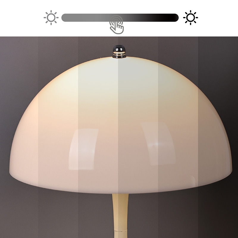 A lámpa kapcsolója egy kis vasgyöngy a tetején, amely érintéssel vezérelhető, és három fokozatban állítható meleg fény. Ez a kialakítás a könnyű lifttel integrálva harmonikus légkört teremt