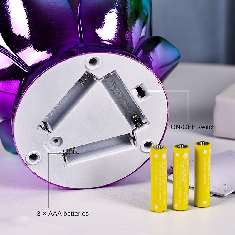 Az éjszakai lámpa alapja kiváló minőségű műanyagból készült, fényűző, szórással festett lilával
