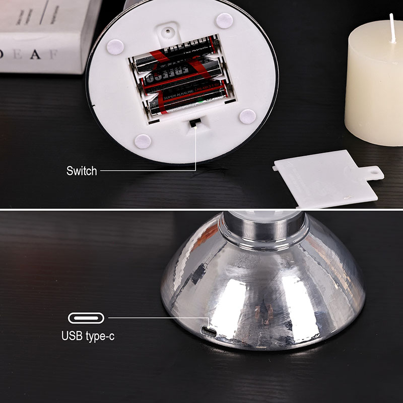 3 AAA elemAz európai stílusú dekoratív gyertyafény fémből és műanyagból készül, a teteje és az alsó része is fémből készült. A tetejére gyújtógyertyák helyezhetők el, a középső része pedig tök formájú európai stílusban készült.