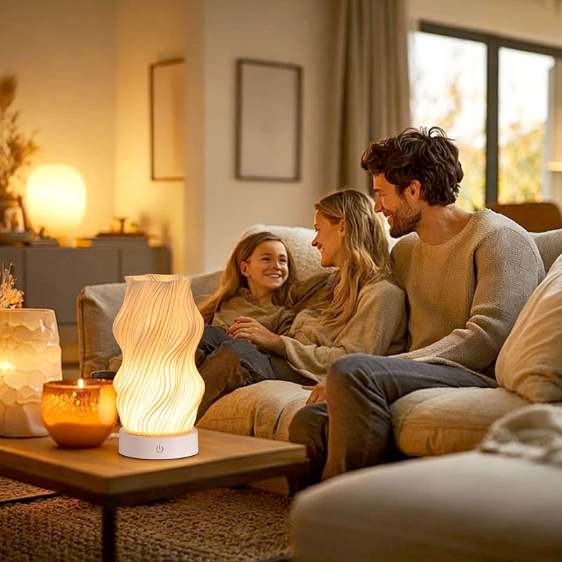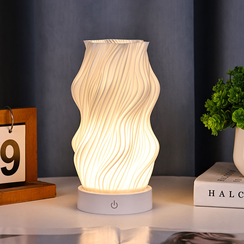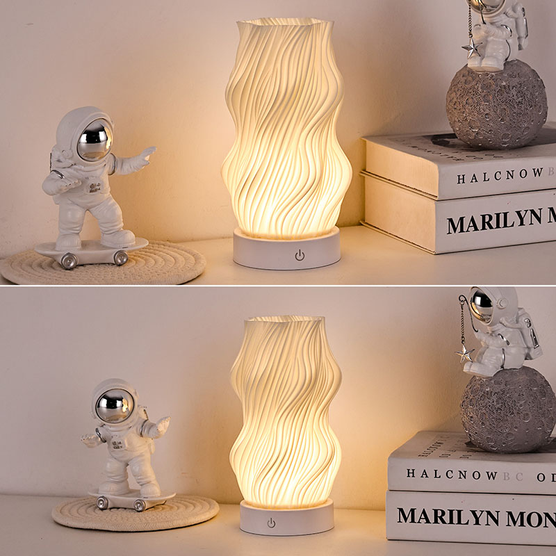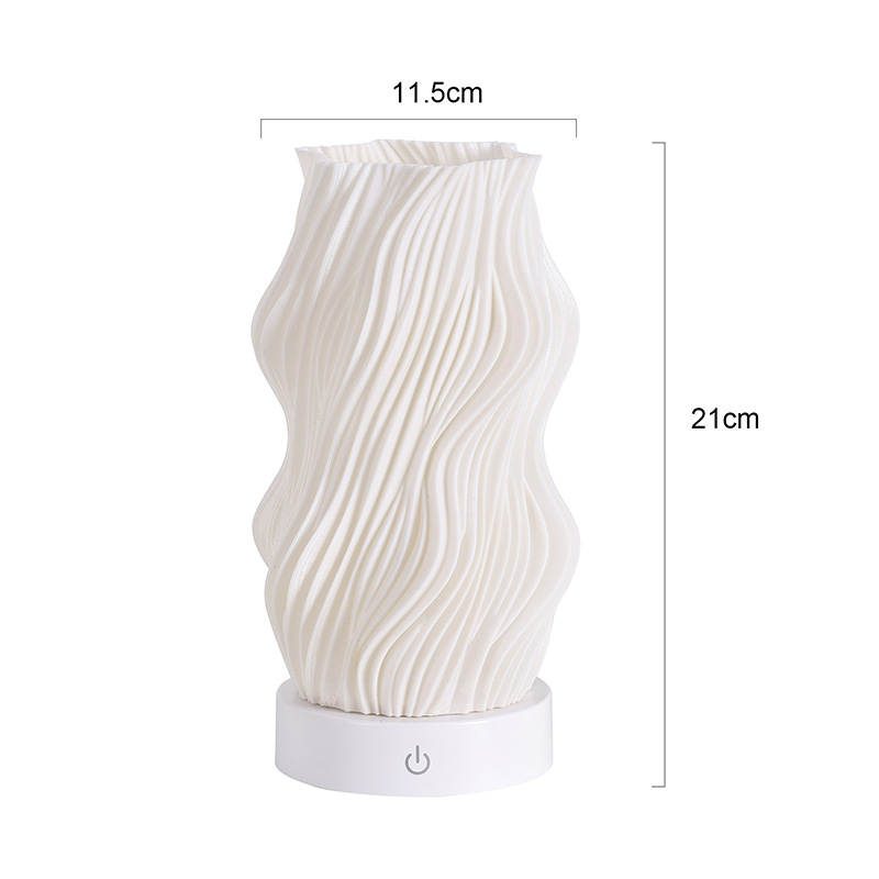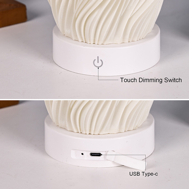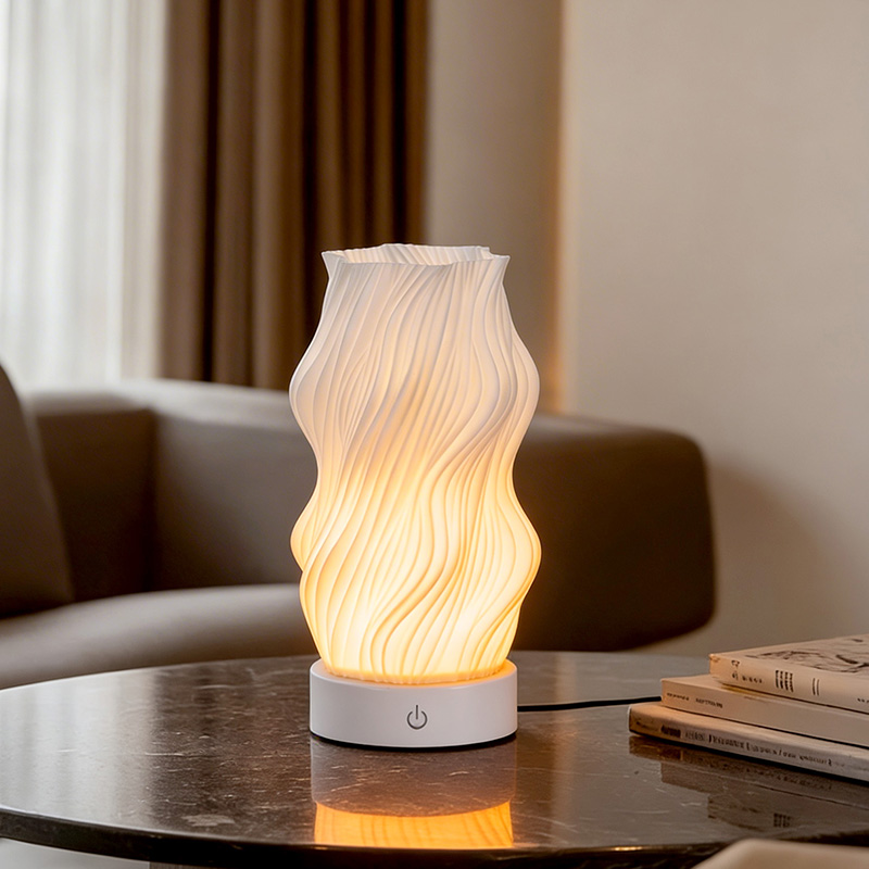 A prémium minőségű műanyagból készült Flame Night Light asztali lámpatest (kompakt) és könnyű. Nem csak meleg tapintású, hanem könnyen tisztítható és mozgatható is. A minimalista, hullámos textúrájú dizájn a művészi szépséget a praktikummal ötvözi, és könnyedén beleolvad minden lakberendezési stílusba. Tökéletes, helytakarékos akcentus, amely egy csipetnyi eleganciát kölcsönöz szobájának.