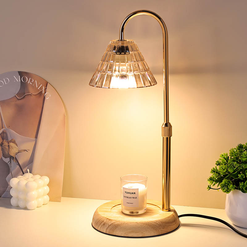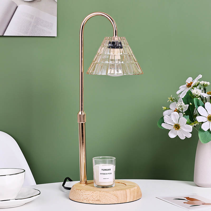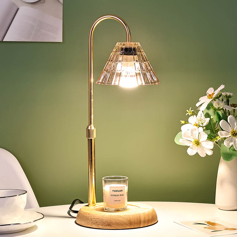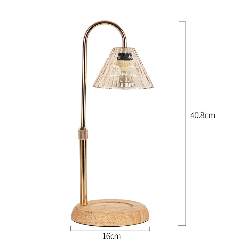 Az üvegernyős asztali lámpa magasságállítással egy hagyományos formatervezési stílus, amely egy hagyományos, fa talpú izzóból és egy aranyszínű fém lámpaoszlopból áll.
