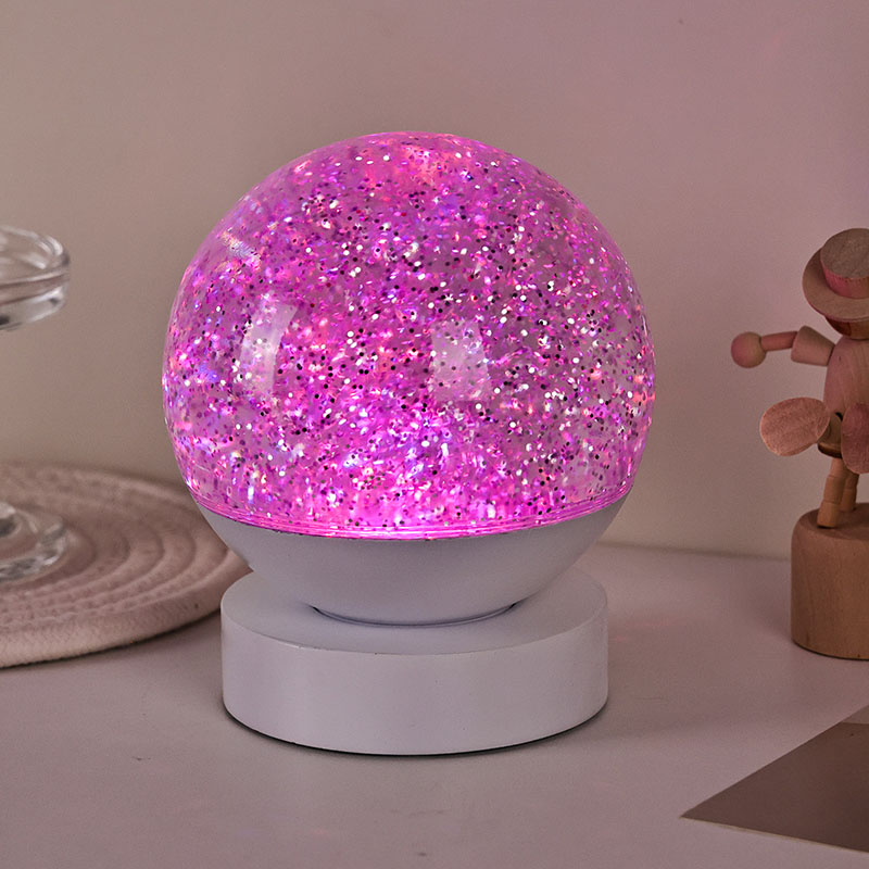 42 x 28,5 x 17,5 cmA Led RGB Glitter Decor Lamp egy kreatív ajándék, amelyet kifejezetten gyerekszobákba, hálószobákba, vagy ünnepi dekorációba terveztek, tökéletesen ötvözi a technológiát és az esztétikát. A labda tele van átlátszó folyadékkal és számtalan apró csillogó csillogó részecskével. Amikor felkapcsolják a lámpát, a folyadék lassan áramlik, a csillogó részecskék pedig táncra perdülnek, mintha egy csillogó galaxist ragadnának meg a tenyerében. Az RGB LED-es világítási effektusok segítségével a színek automatikusan hét árnyalatban váltakoznak – a lágy rózsaszíntől és a lilától a frissítő kékig és zöldig, majd a meleg narancssárgáig és pirosig – minden szín különböző érzelmi élményeket idéz elő, és álomszerű hangulatot teremt.