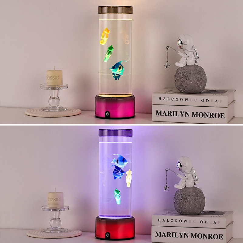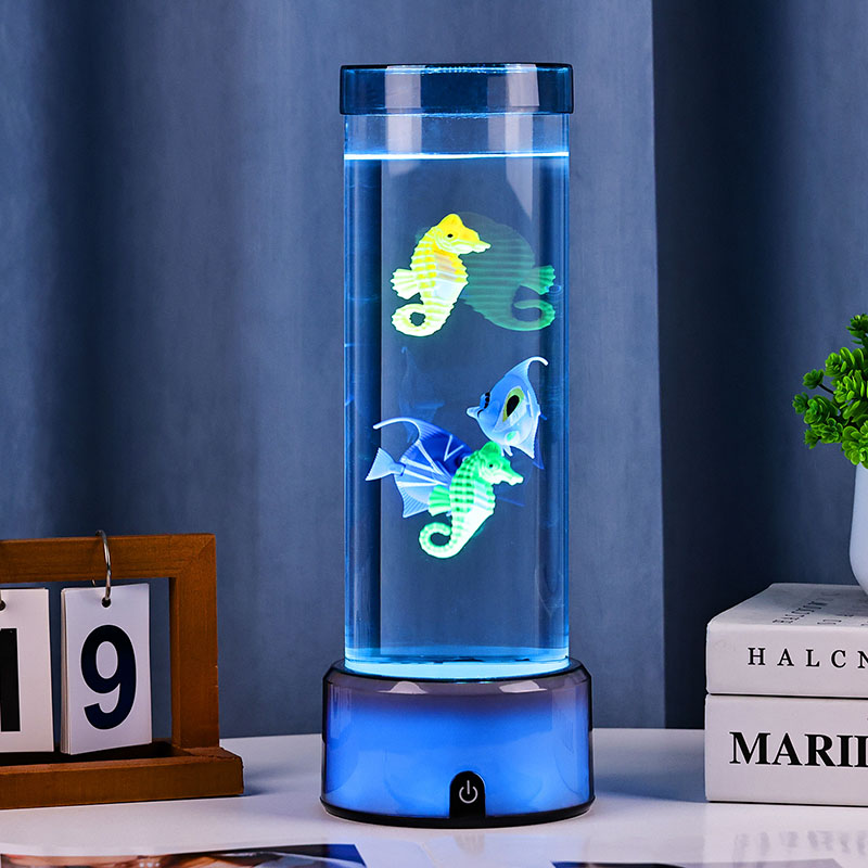 báj. Ez a kiváló minőségű, strapabíró műanyagból készült, magával ragadó lámpa karcsú, hengeres testtel, tiszta folyadékkal és gyönyörűen részletezett lebegő halfigurákkal rendelkezik – beleértve az élénk trópusi halakat és a bájos csikóhalat –, amely nyugodt, élethű óceáni jelenetet teremt, amely nyugalmat és vizuális élményt hoz minden helyiségbe.