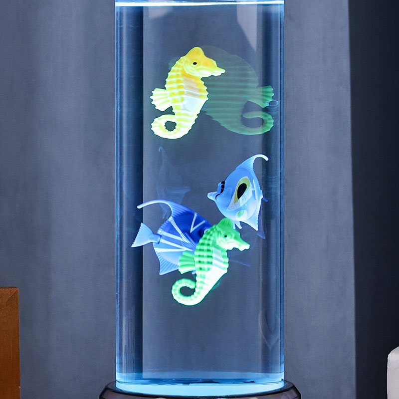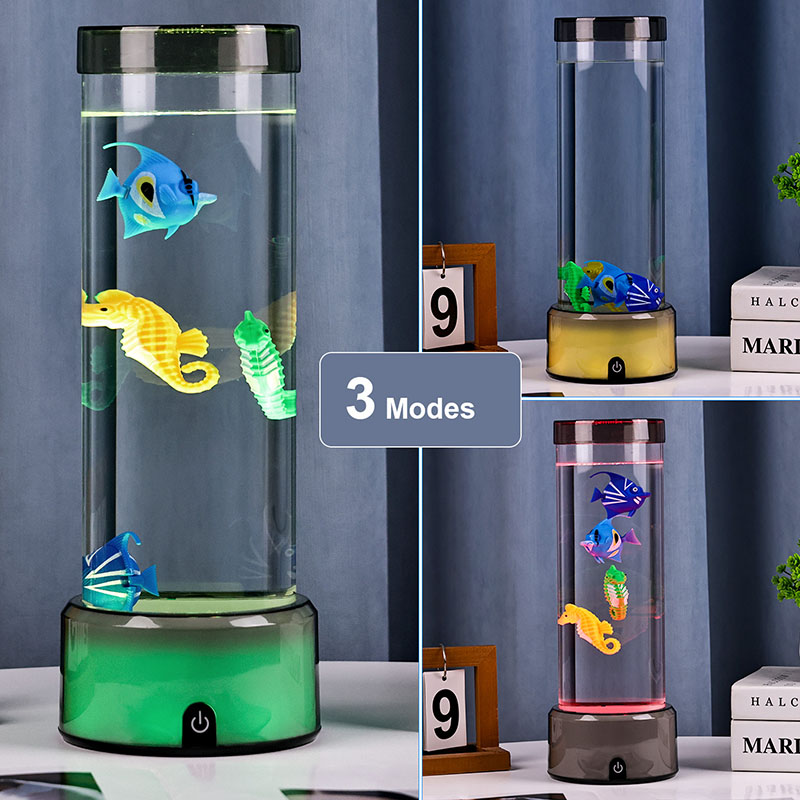 élethű megjelenést kölcsönöznek nekik, ahogy finoman lebegnek a folyadékkal teli csőben. Nézze meg, ahogy "úsznak" a változó színekben, gyönyörű tükröződéseket vetve a közeli felületekre, és minden helyiséget nyugodt oázissá varázsolnak.