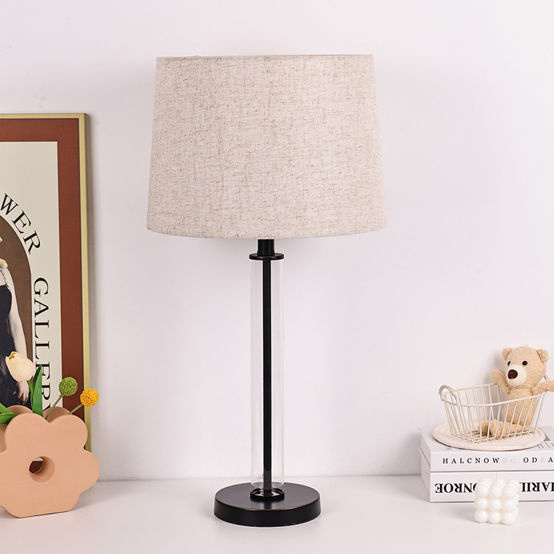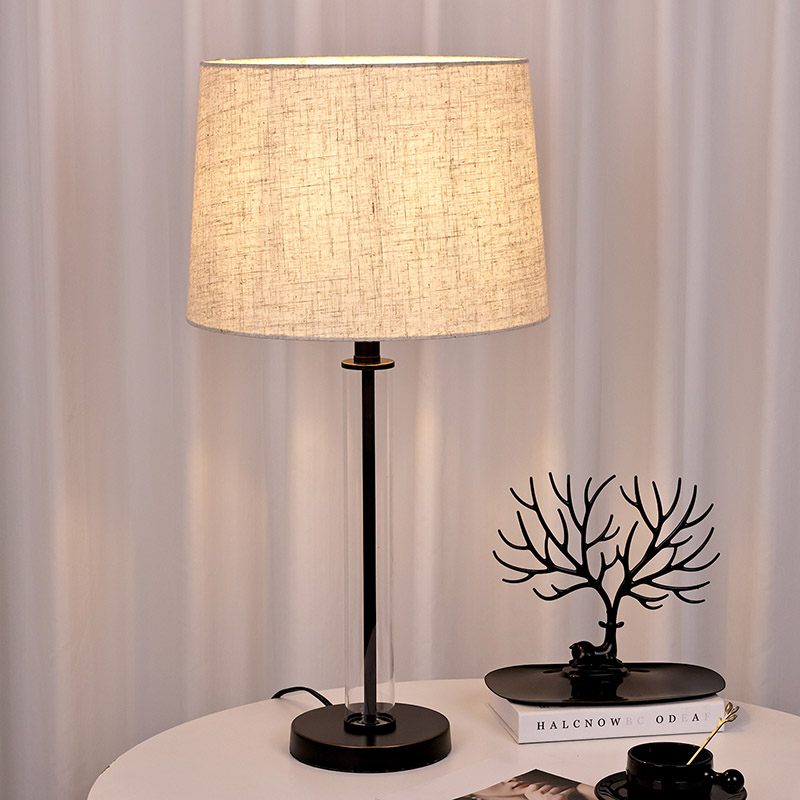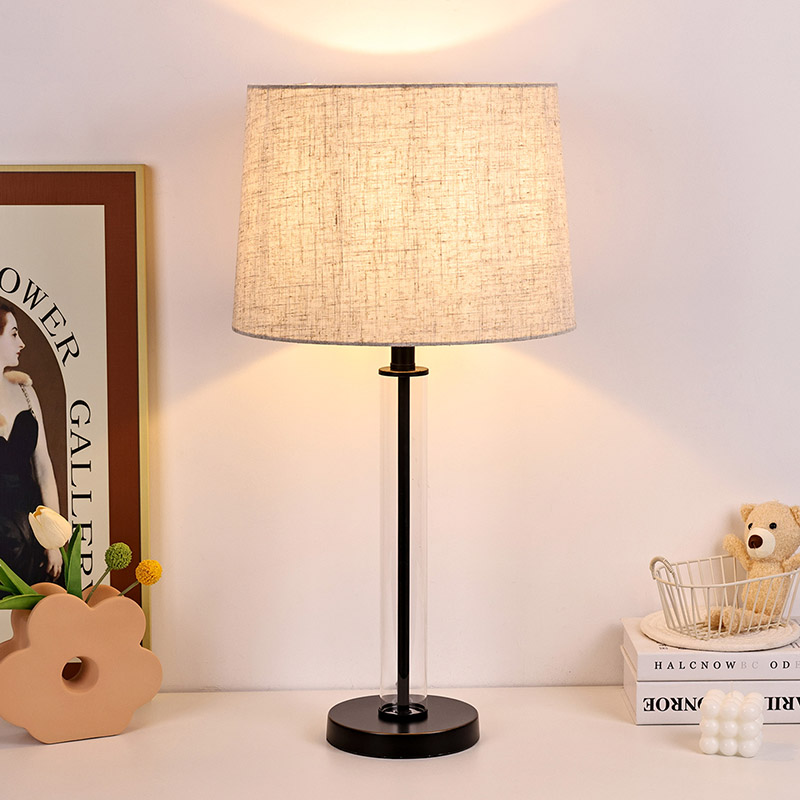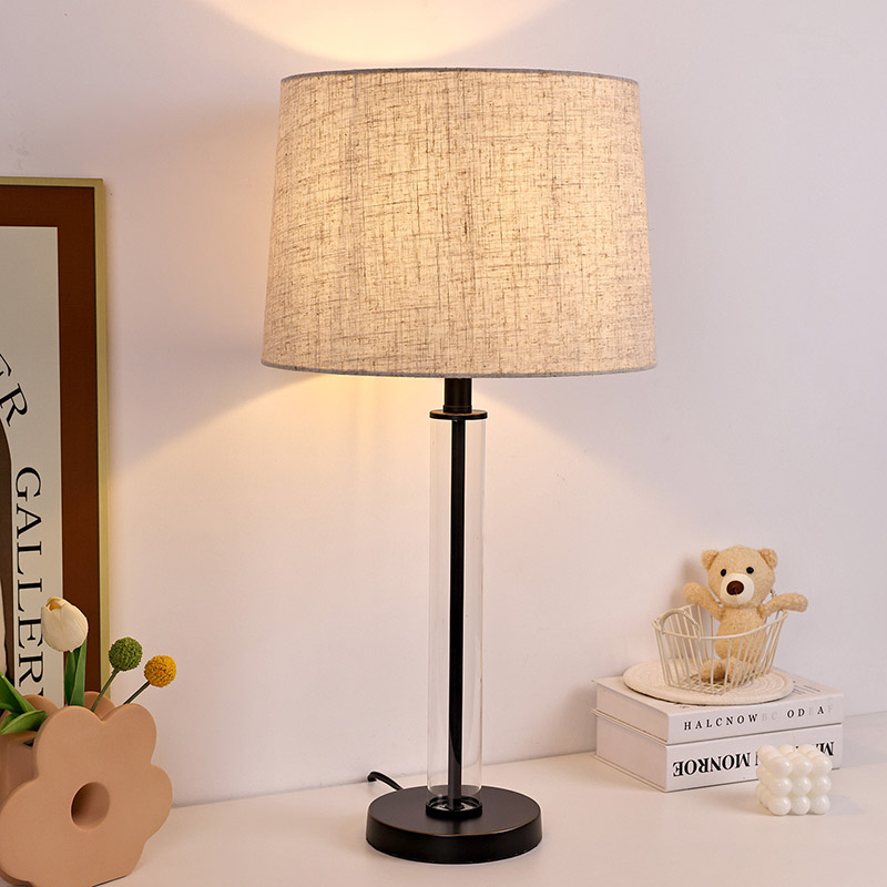 A Midcentrury E26 E27 asztali lámpa szövetbúrával egyedi kialakítású, puha szövethuzattal és finom textúrájával meleg és kényelmes érintést biztosít. Kristálytiszta üvegoszlopokkal párosítva varázslatos fényt veri meg, romantikus és elegáns hangulatot teremt. A masszív és strapabíró fém talp nemcsak stabil tartást biztosít, hanem kiváló minőséget és kifinomult kivitelezést is bemutat.