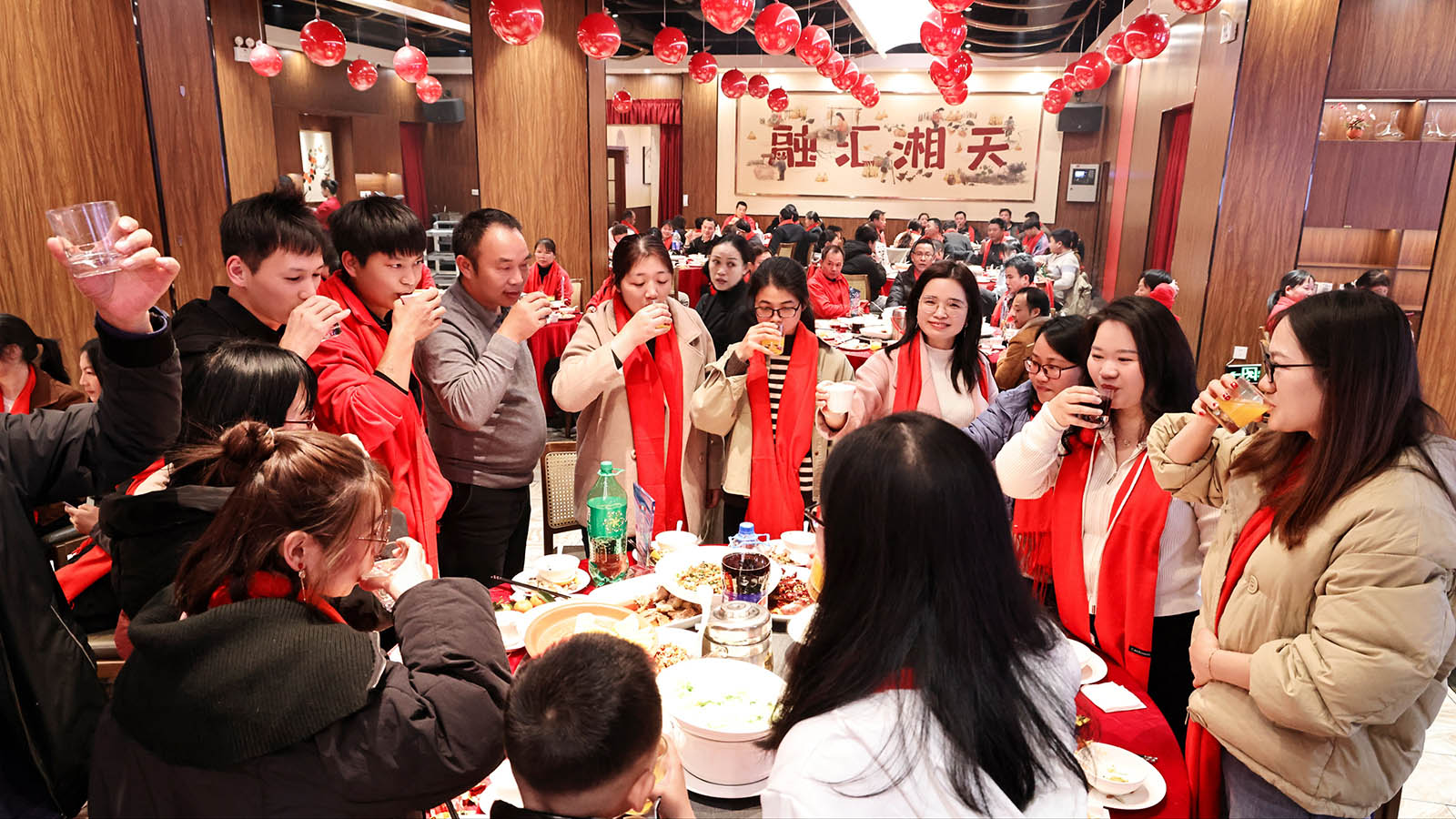 A vacsorán a cég vezetése felváltva pirított az egyes asztaloknál, újévi üdvözleteket és áldásokat küldve minden alkalmazottnak. Huang Xiaoying úr elnöke és Xu Yuhong úr, vezérigazgató, személyesen finom bort öntött az alkalmazottak minden asztalára, megköszönve mindenkinek az elmúlt évben végzett kemény munkájukat.