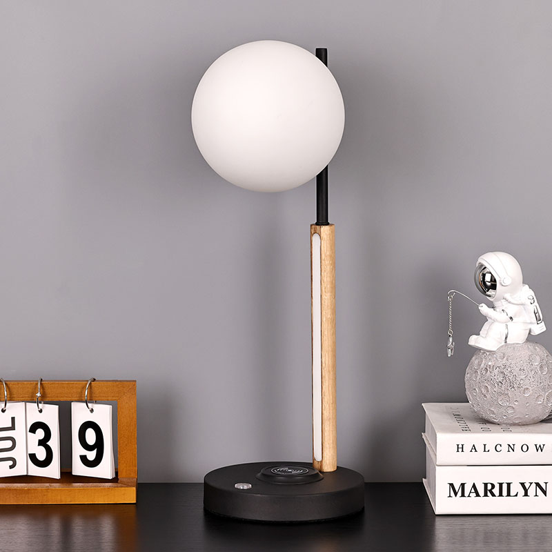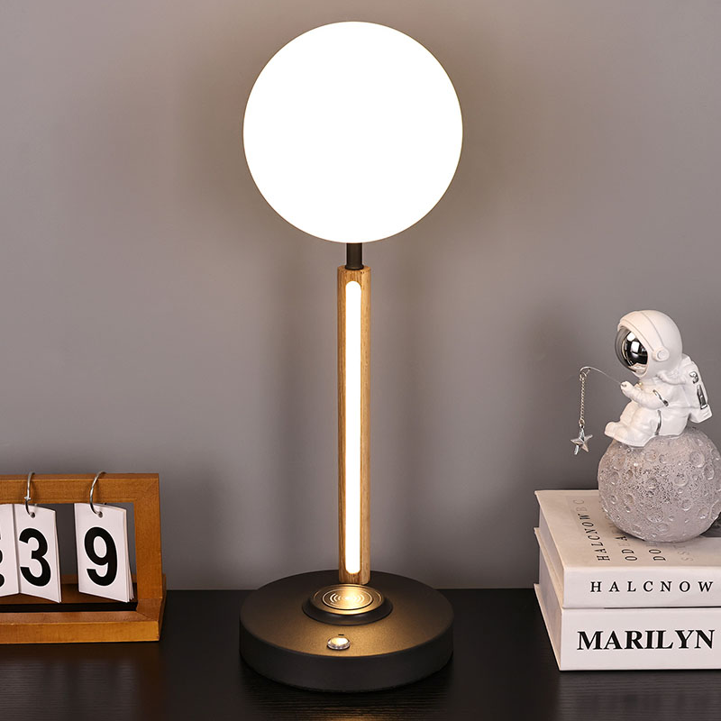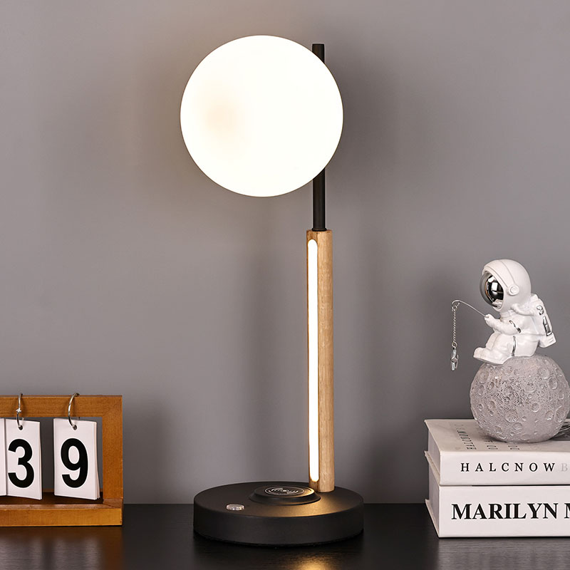 Ez a gömb alakú üveg lámpabúra és fa lámpatest kis asztali lámpa nem csak praktikus világítóeszköz, hanem remek dekoráció is. A nappali sarkába helyezhető, modern és művészi hangulatot kölcsönözve az egész térnek; A hálószobában az éjjeliszekrény mellé helyezhető, így minden békés éjszakán elkísér; A dolgozószoba íróasztala mellé is elhelyezhető, így bőséges és lágy munkafényt biztosít.