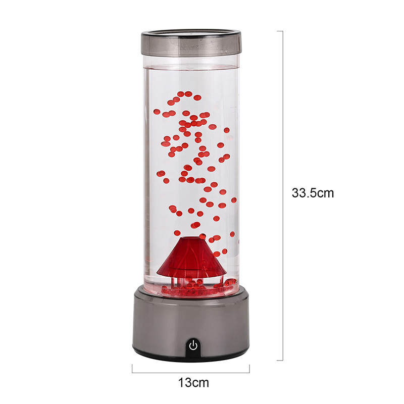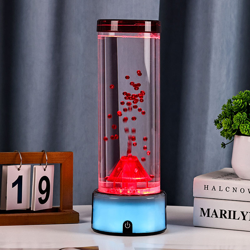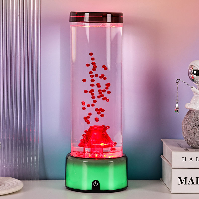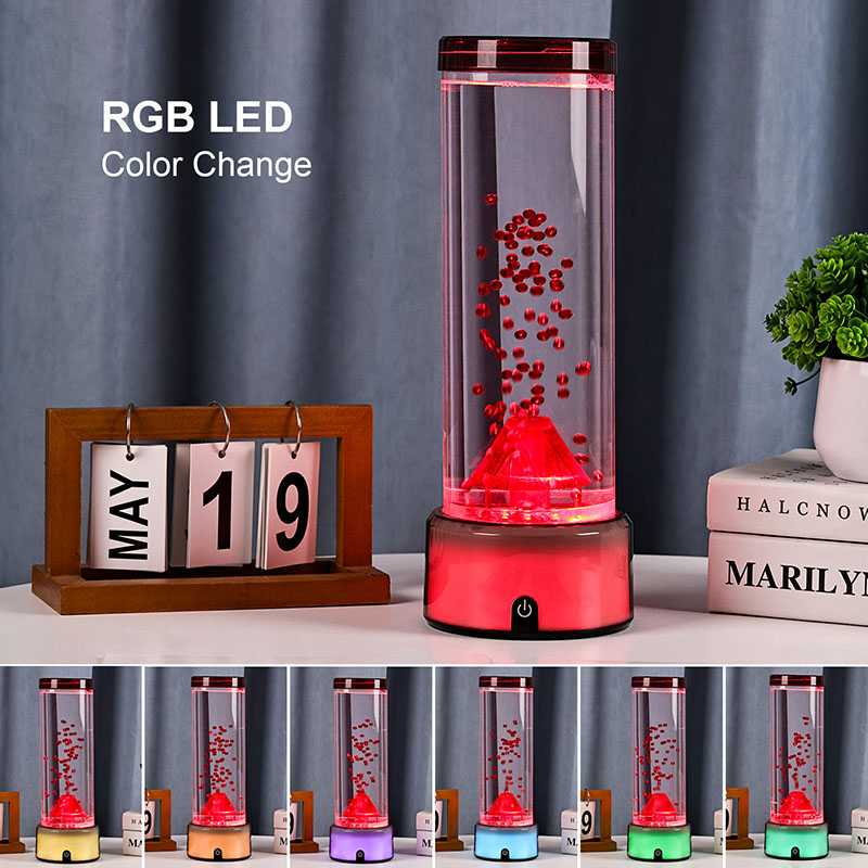 Ez a vulkán alakú LED-lámpa, amelyet a részletekre való aprólékos odafigyeléssel terveztek, hengeres folyadékkamrával rendelkezik, amely tiszta folyadékkal és lebegő vörös részecskékkel van feltöltve, amelyek aktiváláskor vulkánkitörést szimulálnak. A lámpa alja élénk, színváltó RGB fényekkel világít, míg a központi vulkán szerkezete tüzes megvilágítással pulzál, valódi kitörést utánozva. Ugyanakkor finom medúzaszerű dekorációk kecsesen lebegnek a folyadékoszlopban, szürreális víz alatti hangulatot kölcsönözve. Ezek az elemek együtt lenyűgöző vizuális látványt hoznak létre, amely a természet erejét a modern dizájn eleganciájával ötvözi. Tervezés és esztétikai megjelenés Az RGB színváltós vulkánlámpa körülbelül 12 hüvelyk magas, így ideális íróasztalra, éjjeliszekrényre, polcra vagy feltűnő dekorációként a nappaliban, hálószobában vagy nappaliban. Elegáns, modern sziluettje kiváló minőségű, törésálló műanyagból készült átlátszó hengeres csővel rendelkezik, amely biztosítja a tartósságot és a biztonságot. A felső fedél biztonságosan záródik a szivárgás elkerülése érdekében, míg az alap sima, matt műanyagból készült, beépített vezérlőpanellel.