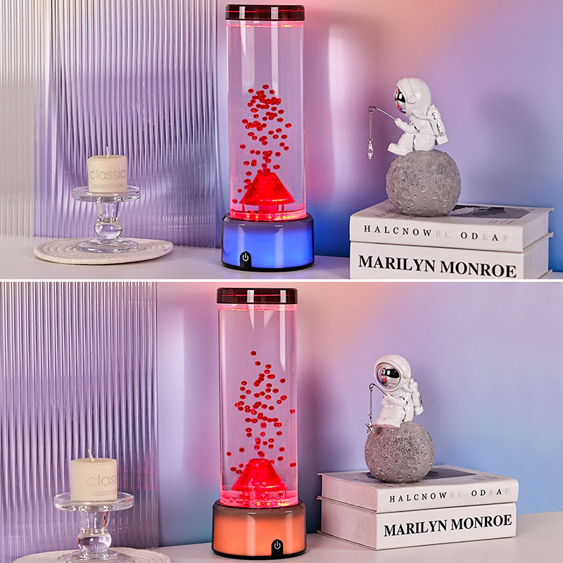 Egyedülálló dekorációs elemként a vulkánlámpa egyéniséget és bájt kölcsönöz minden helyiségnek. A tűz és víz témáinak kombinációja a modern, minimalista vagy eklektikus belső terek kiemelkedő darabjává teszi. Helyezze egy kisasztalra egy könyvespolc mellé, vagy párosítsa növényekkel és könyvekkel, hogy hangulatos olvasósarkot teremtsen.