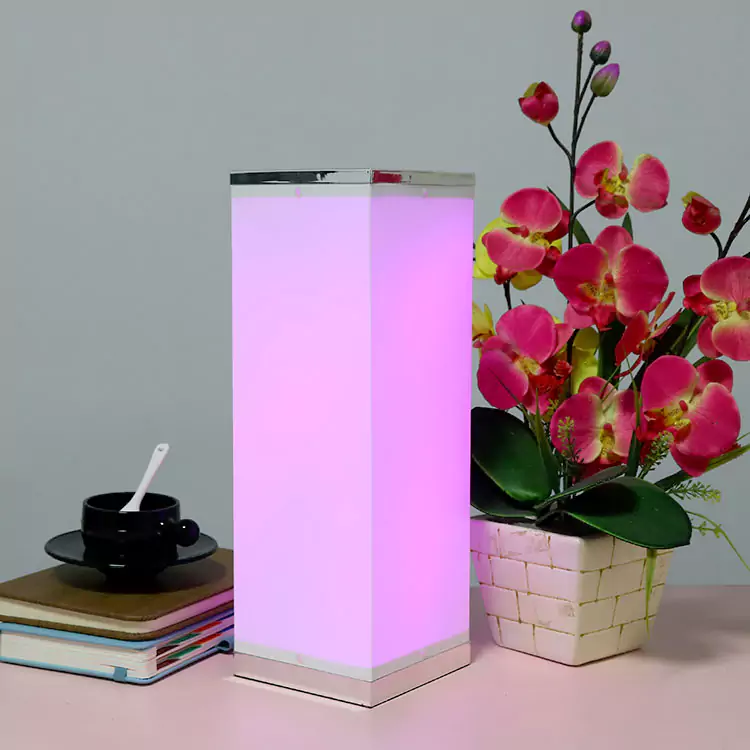 Az rgb dekorlámpa hatása működés közben. Az asztali lámpa 24-es kulcsos kapcsolóval változtatható színben. ez egy egyszerű RGB színváltás a beltéri dekorációhoz az üzleti életben.