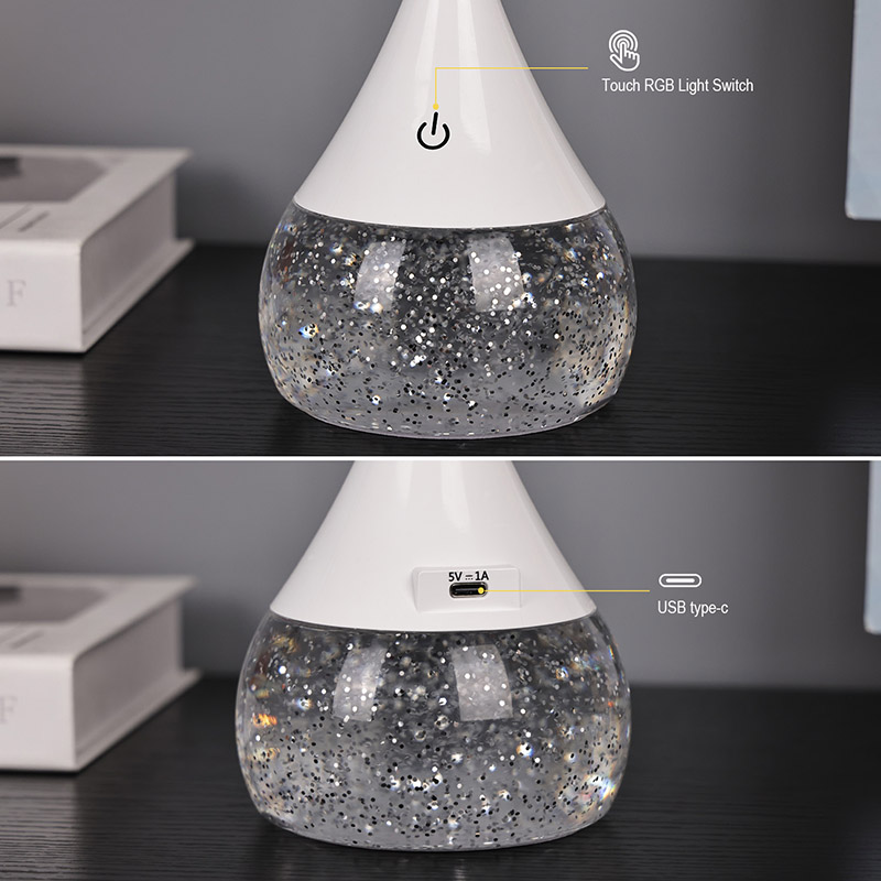 Fehér éjszakai lámpa szikrázó glitterrelFunction 2: