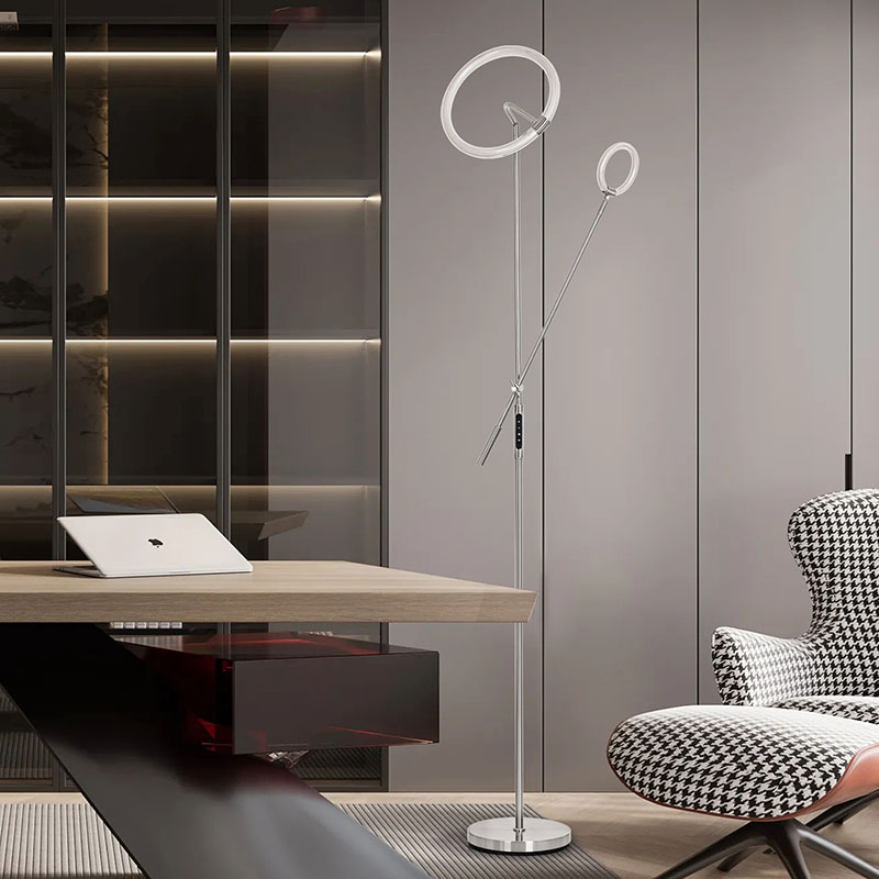 A környezeti világítási kialakítás nem csak egyedi vizuális hatással ruházza fel a lámpákat, hanem hatékonyan szórja szét a fényt, lágyabbá és egyenletesebbé téve a fényt. Ennek az állólámpának a lámpaoszlopa és talpa finoman polírozott és kezelt, sima és finom felülettel és kényelmes kézi tapintással,