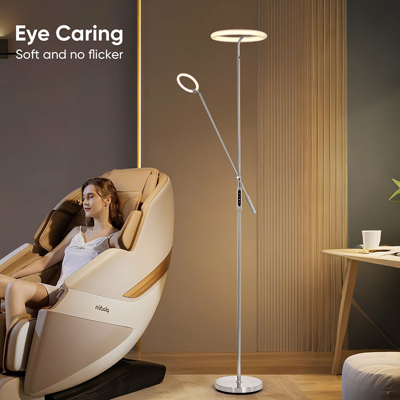 A különböző forgatókönyvek világítási igényeinek kielégítése érdekében ennek az állólámpának a lámpaoszlopa és talpa 3 fokozatú fényintenzitás-beállítási funkcióval van felszerelve. Egyszerű műveletekkel szabadon beállíthatja a világítás intenzitását a különböző igényeknek és jeleneteknek megfelelően. Akár erős fényre van szüksége könyvek olvasásához, akár lágy világításra vágyik a romantikus hangulat megteremtéséhez, ennek az állólámpának a lámpaoszlopa és talpa könnyedén megfelel az Ön igényeinek.