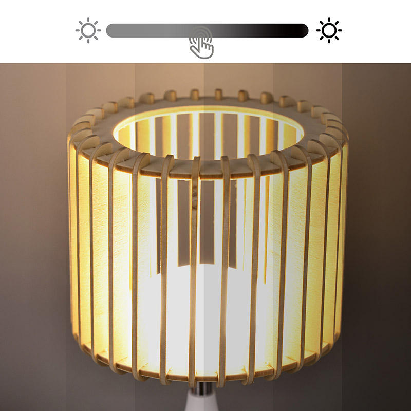 A precízen megalkotott új dizájn LED-es asztali lámpa strapabíró és elegáns kialakítású, tartós műanyagokból készült. A lámpaernyő természetes fa lécekből készült, ami vizuálisan feltűnő és modern megjelenést kölcsönöz. Akár íróasztalára, éjjeliszekrényére vagy bármilyen más felületre helyezi, ez a lámpa biztosan elbűvöli és örömet okoz.