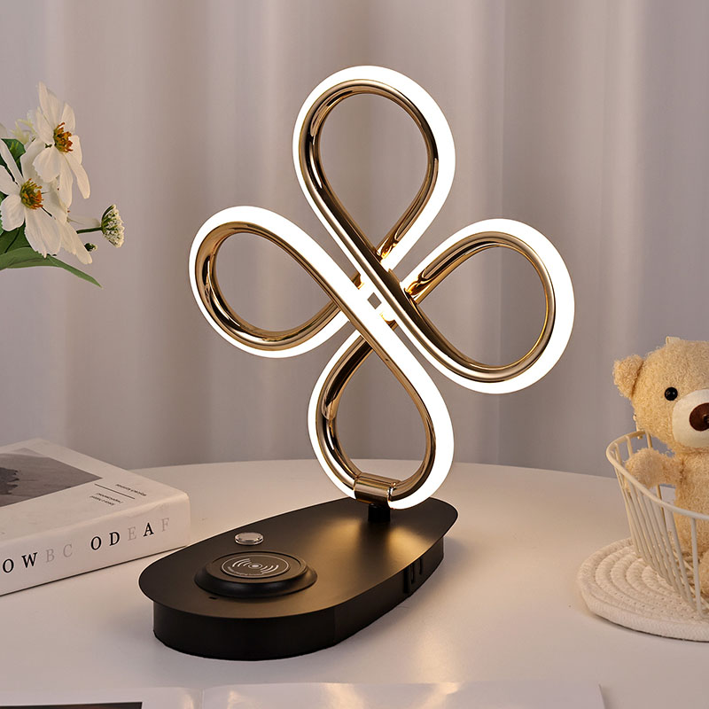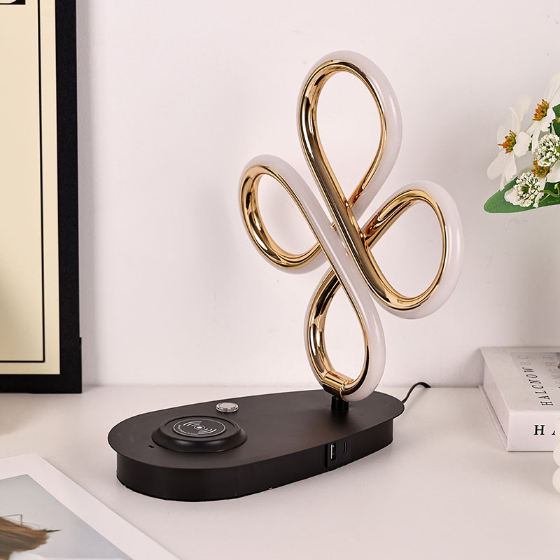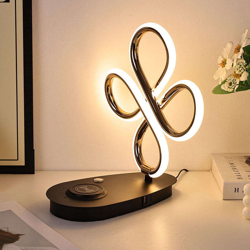 Vezeték nélküli töltő LED asztali lámpa virág ernyővel telefon vezeték nélküli töltővel és usb portos töltővel